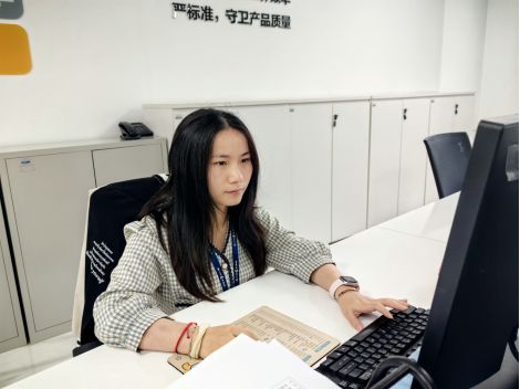 在海陵質量管理部QA,有這樣一位員工,小小的身軀卻不斷挑戰自我,擔起了產品標準的“一片天”,她就是質量標準管理員——李霞。