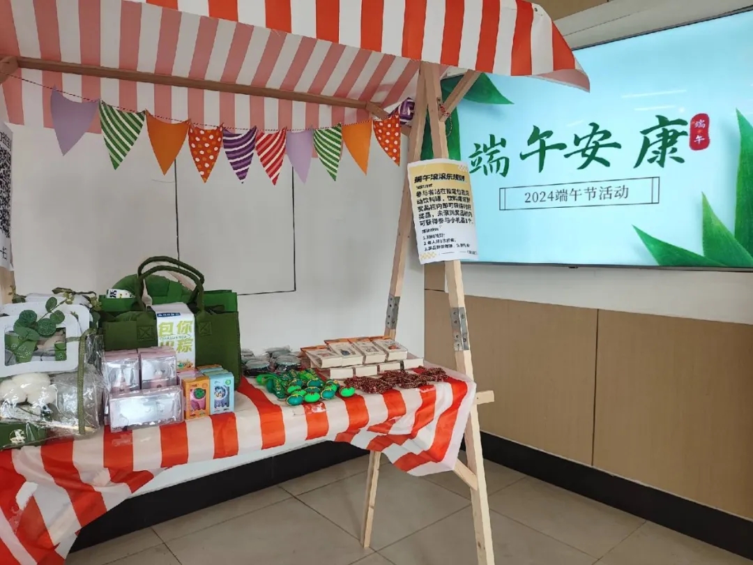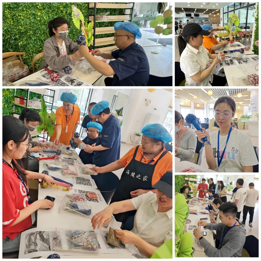 “端午滾滾樂”:食堂入口處,鋪上了一塊兩米長的地毯,裝點著可愛的小粽子,大小相同的空白窗格像階梯一樣列隊在地毯中央。員工們紛紛加入游戲,站在指定位置,將飲料罐滾動至相應窗格中,獲得驚喜獎品;未能獲獎的員工,也都領取到端午節五色繩。海陵工會為員工們準備了端午大禮包、補水儀、端午掛飾、零錢包等眾多獎品,活動現場熱鬧非凡,員工們積極參與游戲,共祝端午安康。