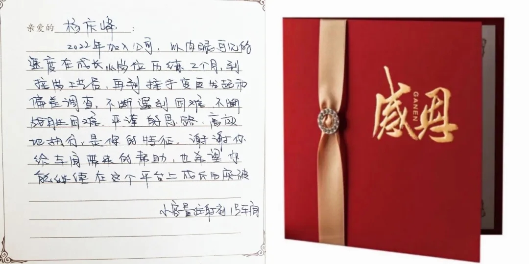 感謝卡:2022年加入公司,以肉眼可見的速度在成長,從崗位歷練2個月,到接崗工藝員,再到接手變更發起和偏差調查,不斷遇到困難,不斷戰勝困難。嚴謹的思路,高效地執行,是你的特征,謝謝你給車間帶來的幫助,也希望你能繼續在這個平臺上成長和突破。