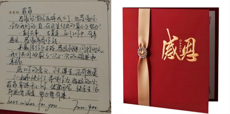 海陵衷心對(duì)她們的付出表示感謝,并為其準(zhǔn)備了感恩卡和禮物,直屬領(lǐng)導(dǎo)“驚喜出現(xiàn)”,將手寫感謝卡和禮物交給她們!