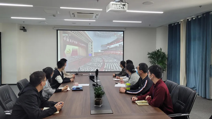 南京海陵藥業有限公司工廠負責人李靜組織全體黨員與先進群眾代表,以“線上+線下”形式認真收看開幕實況,并在支部內開展學習心得分享。