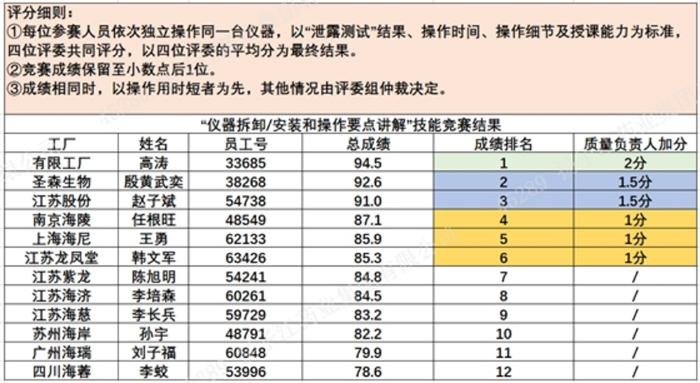 集團(tuán)質(zhì)管部在2022年開展了滴定操作技術(shù)、液相儀拆解講解兩次技術(shù)比武活動。作為一線骨干的尤銳擔(dān)當(dāng)起了技術(shù)指導(dǎo)的角色:賽前對比賽方案進(jìn)行認(rèn)真研究和分析,與參賽人員分析關(guān)鍵得分點(diǎn);總結(jié)自己以往參加技術(shù)比武的經(jīng)驗(yàn),對一些臨場狀況和錯(cuò)誤案例進(jìn)行分享;與參賽人員開展一對一實(shí)操演練,結(jié)合技術(shù)原理及合規(guī)要求分析可提升環(huán)節(jié)。通過細(xì)致的輔導(dǎo)提升,最終南京海陵在滴定比武中獲得個(gè)人與團(tuán)體三等獎(jiǎng),在儀器拆解講解比武中獲得三等獎(jiǎng)。