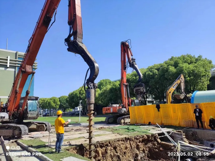 2023年的2月10日,一隊穿著嘉凡市政的施工人員來到了海陵檢測中心,隨著設備的轟鳴聲準備作業施工。然而此地東側臨河,其水泥平臺為懸挑結構,若是直接開挖,可能會有平臺結構安全風險!
