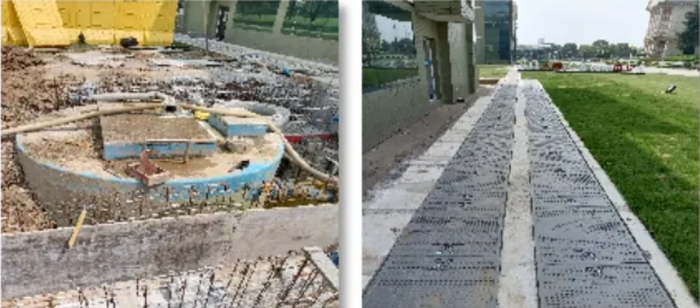 2022年6月,薛永峰開始將自己設想的畫面細化落實,項目正式立項。前期的調研設計工作是項目順利落地的保障。海陵草坪之下,是二十年來“勤懇”運行的暗管、電纜和壓力管道,盡管有圖紙可供參考,但畢竟年份久遠,實際的情況只有現場勘察才能確認。而施工方案的設計既要滿足海陵同步使用同步改造的需求,又需要便于后期對草品美觀度的恢復,使之符合廠區整體的環境風格。薛永峰關注著設計圖的每一個細節,并對設計單位提出改進意見。項目進度穩步推進。