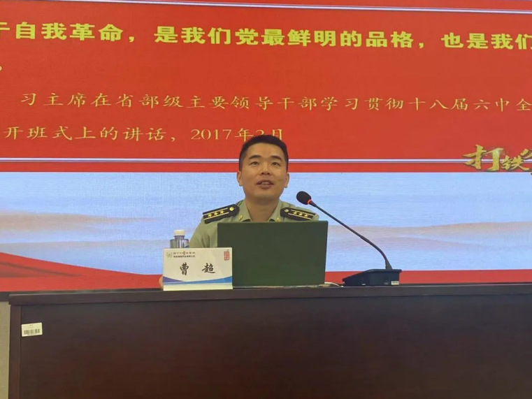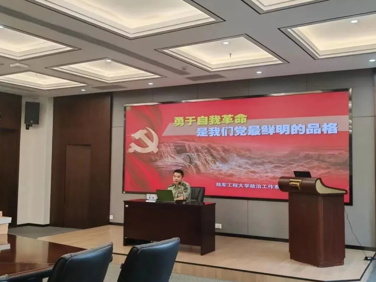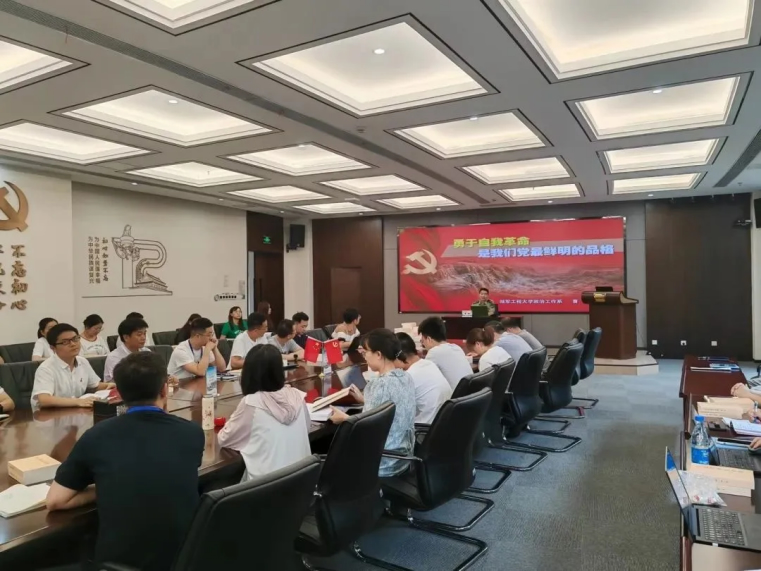 會議的第二項,全體與會人員進行了專題黨課學習。陸軍工程大學政治工作系曹超副教授為大家進行了主題為《勇于自我革命是我們黨最鮮明的品格》的專題匯報。曹教授肯定了海陵黨支部的凝聚力、戰斗力,并以黃培炎和毛澤東關于“如何跳出治亂興衰的歷史周期律”的探討為切入點,從以下三個方面進行了詳細闡述: