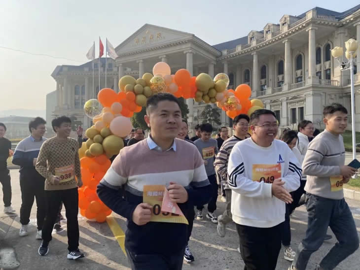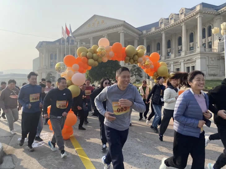 彼此加油打氣,共同熱身之后,大家齊聚彩虹跑道起點。在聽完主持人宣讀完比賽規則后,廠長助理李靜摁響發令器,所有人帶著歡聲笑語,向終點進發!